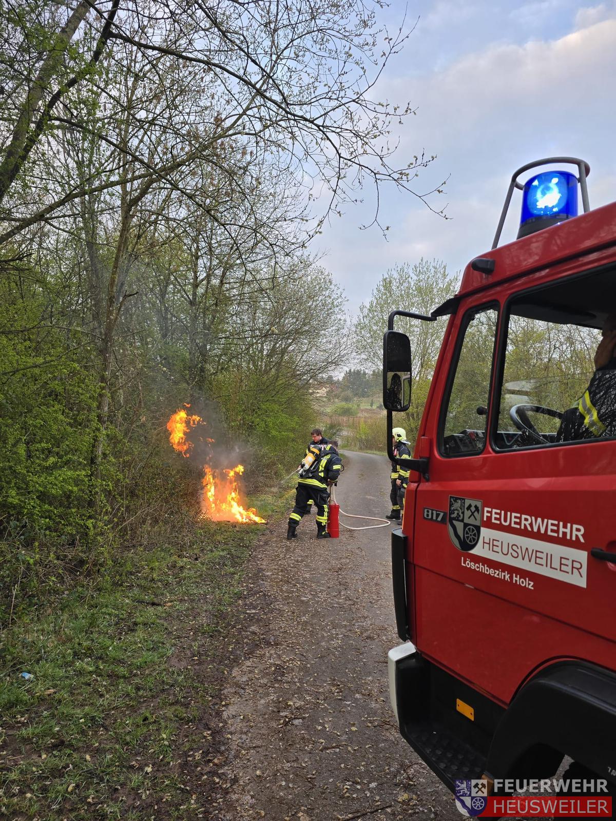 Der Löschbezirk Holz wurde mit dem Alarmstichwort „Brand 1, Brand Mülleimer/Mülltonne“ in die Saarstraße nach Holz alarmiert. Vor Ort hatte das Feuerwehr bereits auf die Vegetation übergegriffen. Mittels Kleinlöschgerät wurde das Feuer gelöscht und eine weitere Ausbreitung verhindert.